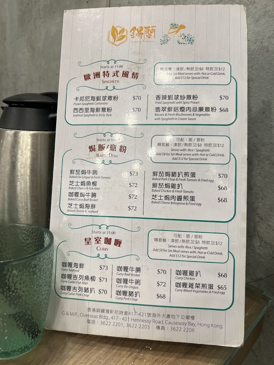 Welcome to Ceylon (Wan Chai), a delightful Hong Kong-style café located on Hennessy Road, where tradition meets efficiency. The menu is crafted to provide comfort and familiarity, featuring a robust breakfast selection available from 8:00 AM to 11:00 AM, including double assortment sandwiches and the rich ham and shredded abalone macaroni, both perfect for kickstarting your day.